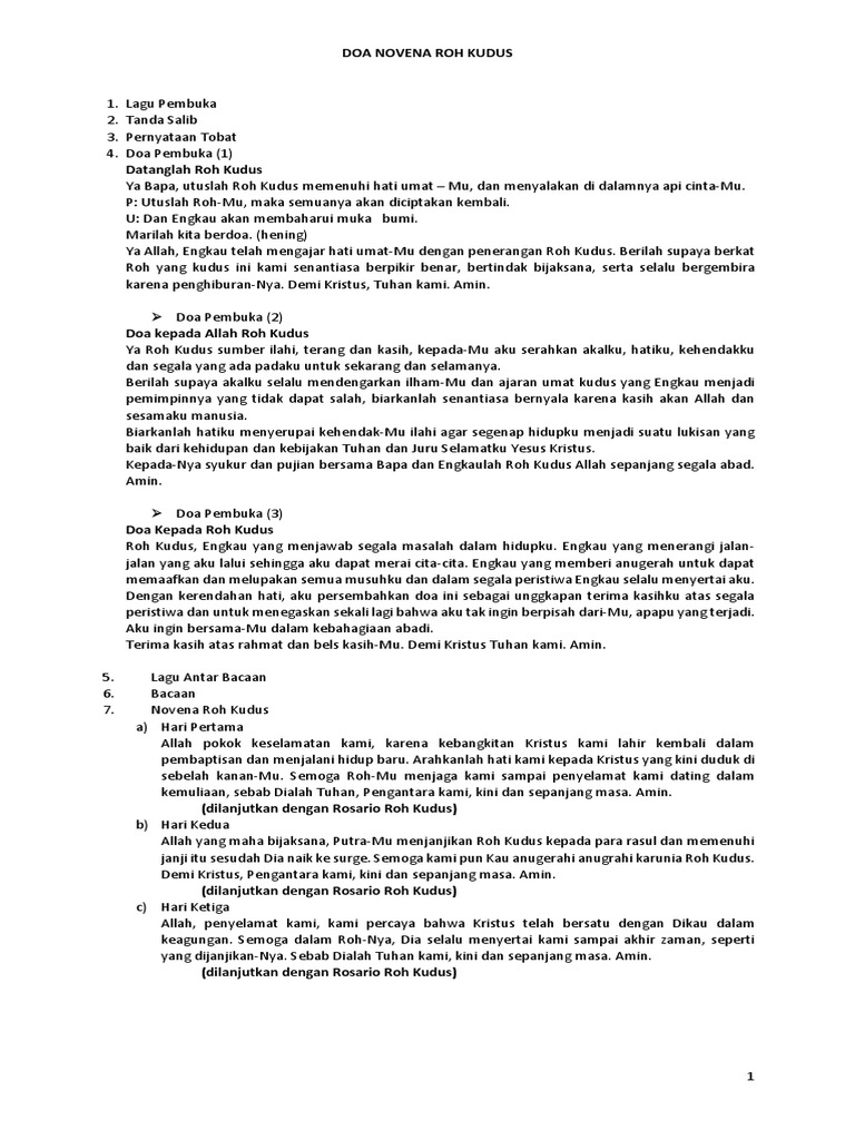 Novena berasal dari bahasa latin novem sejarah dan nama santo santa katolik,orang kudus,kalender perayaan,gereja katolik,agama katolik. Novena roh kudus ini dilaksanakan selama sembilan hari, mulai pada hari sesudah kenaikan dalam novena ini umat memuji tuhan yang menjanjikan kedatangan roh kudus dan memohon. Novena roh kudus ini dilaksanakan selama sembilan hari, mulai pada hari sesudah kenaikan yesus ke surga dan berakhir pada hari sabtu menjelang pentekosta. Ajarlah kami mengetahui bahwa semua yang ada di dunia ini sifatnya sementara saja. Pujian pencurahan roh kudus misa online 16 mei 2021 novena roh kudus iii pk.